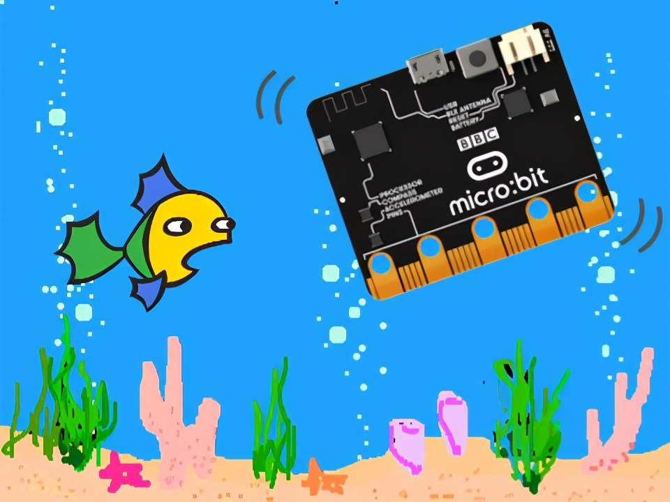 利用 micro:bit 的 acceleroeter(tilt) 加速度传感器(x, y)来移动大鱼去吃小鱼。
