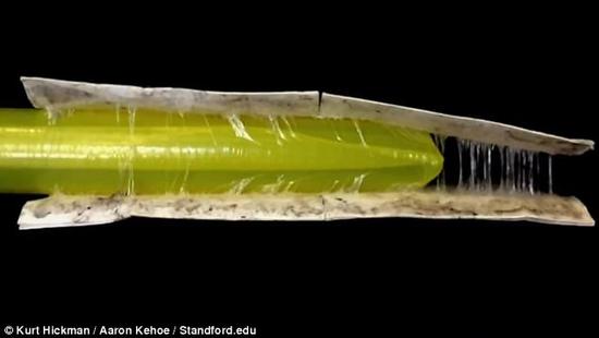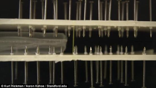 为了试验蛇形机器人的可行性,研究团队设立了一系列障碍试验,比如让机器人穿过粘蝇纸、胶水、钉子阵、狭窄通道等,它像条活的藤蔓一样生长、寻找生长空间,轻而易举地穿过看起来不可能穿过的地带,最终毫发无伤地通过了全部考验。