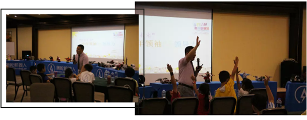 在这个环节中出现了一个有趣的现象是:有的孩子不愿举手,有的孩子犹豫要不要举手,有的孩子举手活跃度很高,但上台后又不知道要说些什么...