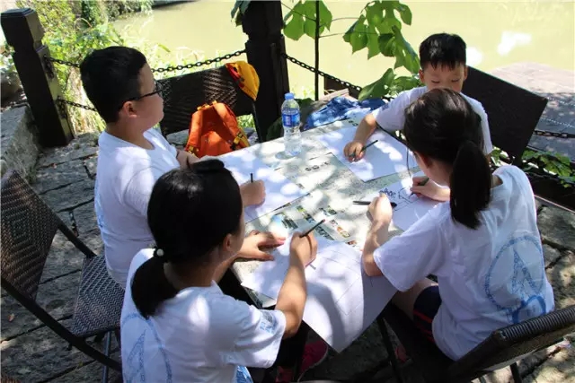 到达梅花洲的廊桥,便到了营员们的创意绘画写生环节,以孩子们独特的视角记录下梅花洲的一颦一韵。