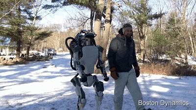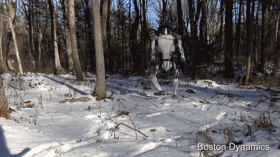 当从后面被巨大外力突然撞到,在判断无法保持平衡后,二代Altas会采取蜷缩四肢自我保护,之所以是巨大,是因为如果外力不够大,它就可以自我协调几步保持平衡。