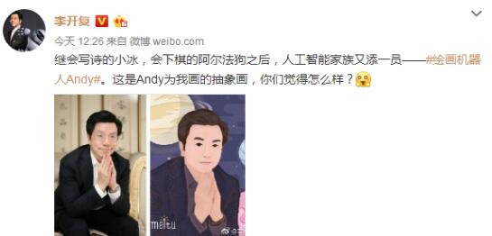 作为人工智能领域的专家,李开复一直以来都很关注人工智能领域的最新进展。就在今天,细心的网友发现,李开复在微博上晒出了一张自己的插画像,在微博中还特别提到“这是绘画机器人Andy为他画的”。