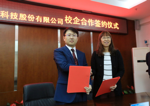 仪式最后,关晓冬副校长代表学校与奥松机器人科技股份有限公司董事长于欣龙共同签署了《校企合作框架协议书》。