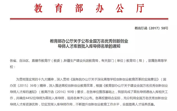 全国优秀创新创业导师
