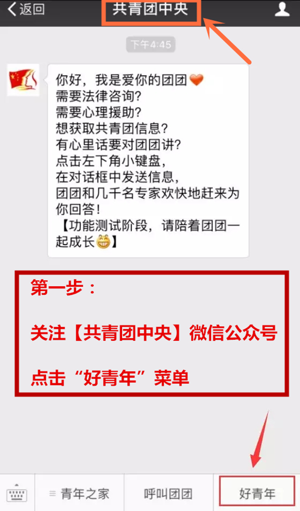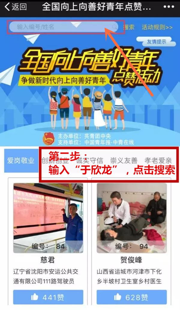 ➤➤➤微信搜索“共青团中央”微信公众号,点击自定义菜单“好青年”链接,选出你心目中的“全国向上向善好青年”。