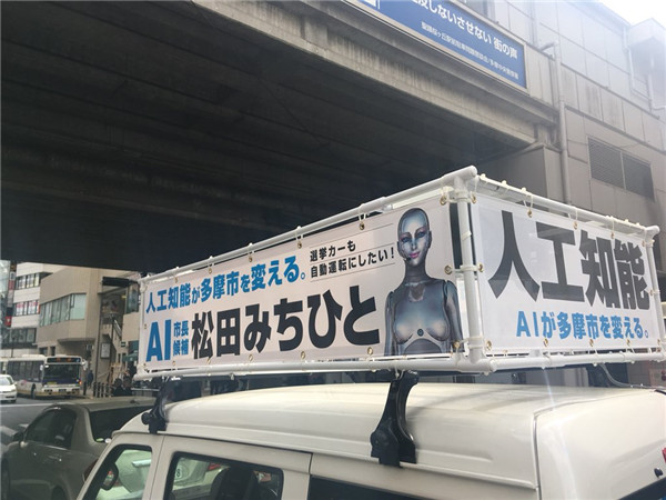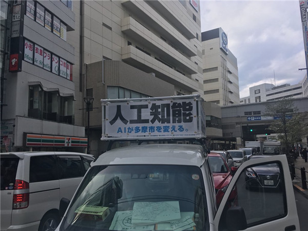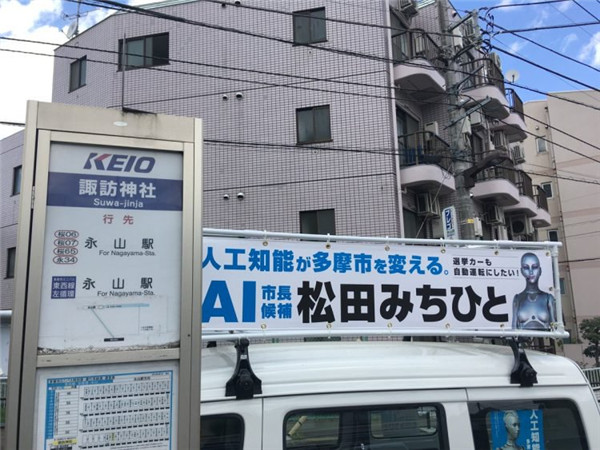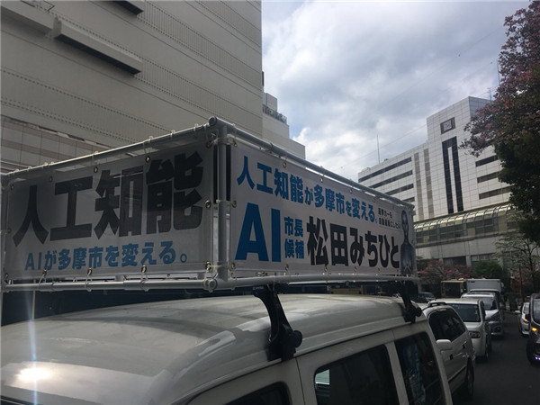 跟它的人类竞争对手一样,AI市长候选人也在为自己的选举造势。展示未来主义机器人和活动信息的海报已经贴满了多摩市,竞选卡车一直在宣扬AI乌托邦的承诺并寻求支持。