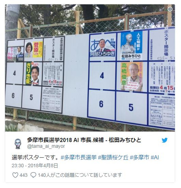 松田先生在Twitter上宣布: “全世界第一次,AI将参加选举。”