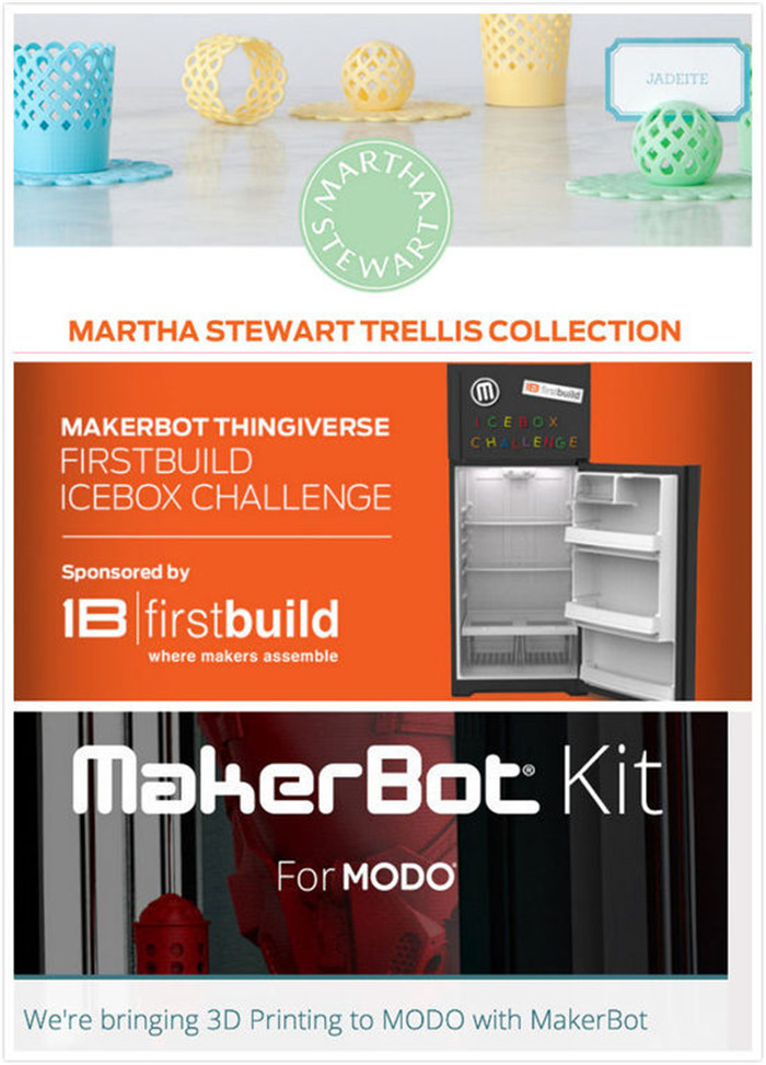 Martha Stewart,美国“家政女王”与 MakerBot 联合推出格子风家居用品打印系列。
