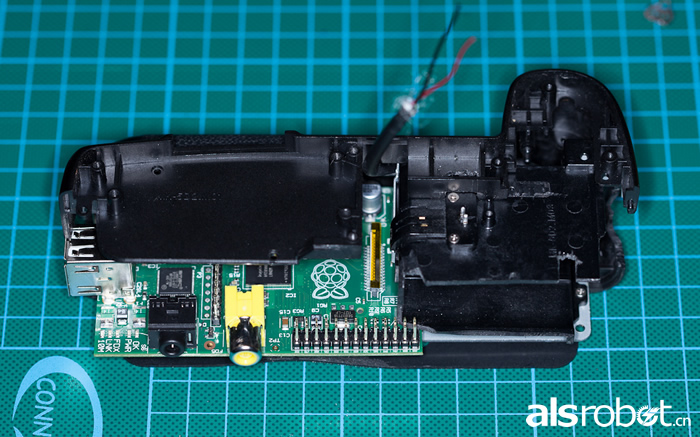Raspberry Pi塞在原先的电池室空间中,信用卡大小看来很轻松放进去了