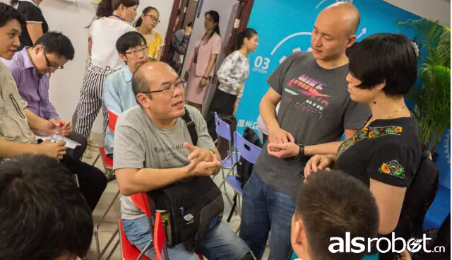奥松机器人创始人于欣龙(右一)现场发言参与交流