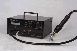 利用热风将焊锡熔化,同时特殊的吸锡装置吸除熔化的焊锡。系统的出风和吸力大小采用两台风泵。出风量和吸风量均可以连续调节。出风泵与加热系统联动,可设定出风口温度,设定温度及实际温度液晶显示,吸风泵可单独开启或关闭。利用热风将焊点(焊锡)熔化,同时利用特殊的吸锡装置将熔化的焊锡吸除。并且熔化吸锡过程同时进行,不用接触电路板,快捷无损的摘除电路板上的各类元器件。热风的温度,风速根据需要可调,吸锡的吸力大小可调。可以选用各类型的风嘴、吸锡嘴。适合于各类型元器件的拆焊。