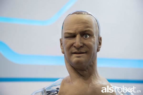 Han能回答一些简单的问题,由特殊材料制成。不仅在外表上看起来非常逼真,还会做很多面部表情。