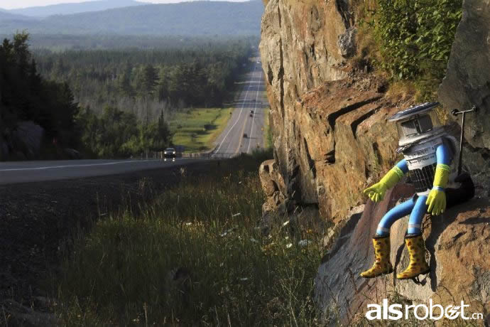 会搭便车的机器人hitchBOT,自己搭顺风车穿越加拿大。
