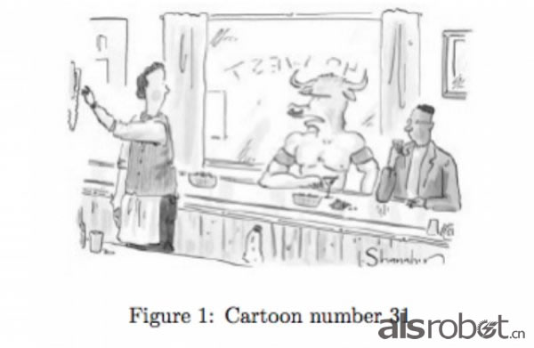 《纽约客》杂志每周都会在杂志背面发起漫画填说明文字的比赛,有5000人递交了他们的作品,读者对前三名进行投票选出最适合的漫画文字。鉴于过去十年里400多幅漫画总共收集到了超过200万个说明投递稿件,可以说是相当庞大的数据库。研究人员希望通过分析数据创造出一种计算机算法,让计算机自己分辨出哪些文字有意思,哪些没有意思。