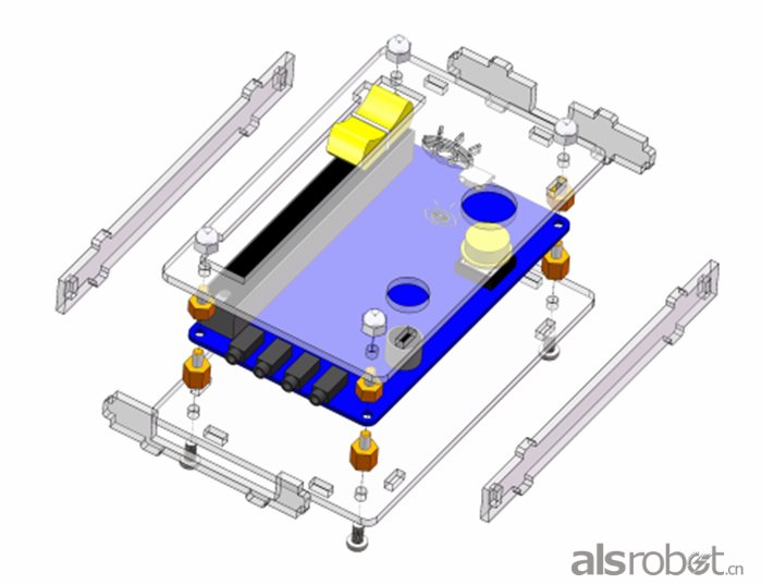 为了防止PicoBoard传感器板裸露在外,引起短路、划伤等,这里使用亚克力板制作了一个外壳(见图7),创客们也可以自己动手DIY一个。
