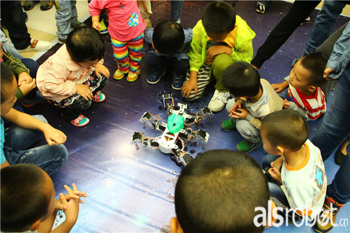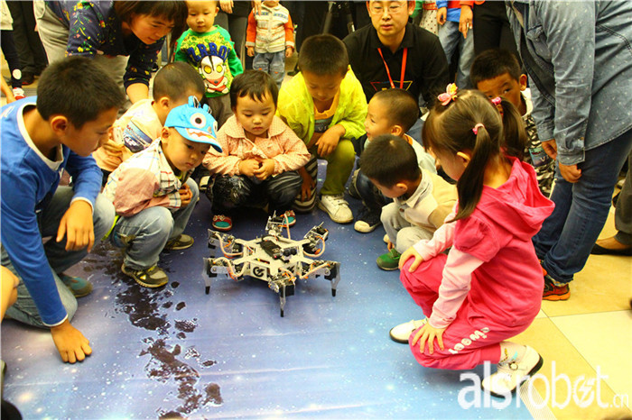 这些机器人都惟妙惟肖啊,不仅外形酷似,连行动的状态也是一样一样的!看现场这些可爱的小宝贝们,都被我们奥松炫酷的机器人迷住啦~