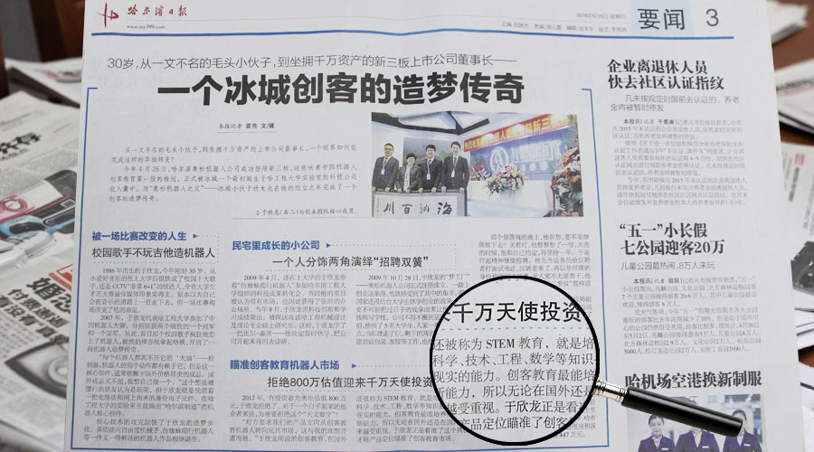 【媒体奥松】哈尔滨日报——一个冰城创客的造梦传奇