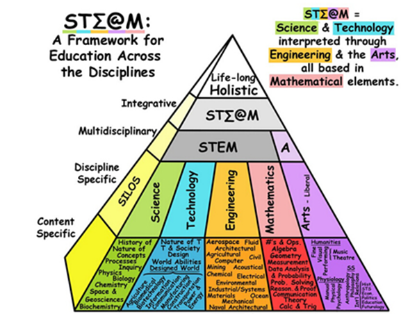 近几年来,STEAM一直是在教育领域出现频率较高的一个词。STEAM教育是美国政府提出的教育倡议,被誉为美国的“素质教育”。“STEAM”是5个单词首字母的缩写:Science(科学)、Technology(技术)、Egineering(工程)、Arts(艺术)、Maths(数学)。上世纪80年代美国为提升国家竞争力、劳动力、创新力提出的“STEM”教育战略,旨在打破学科领域边界,培养学生的科学素养。2011年,美国维吉尼亚科技大学学者Yakman第一次在研究综合教育时提出将广义上包括美术、音乐、社会、语言等人文艺术的“A”(Arts艺术)纳入进来后,STEAM教育逐渐发展为包容性更强的跨学科综合素质教育。