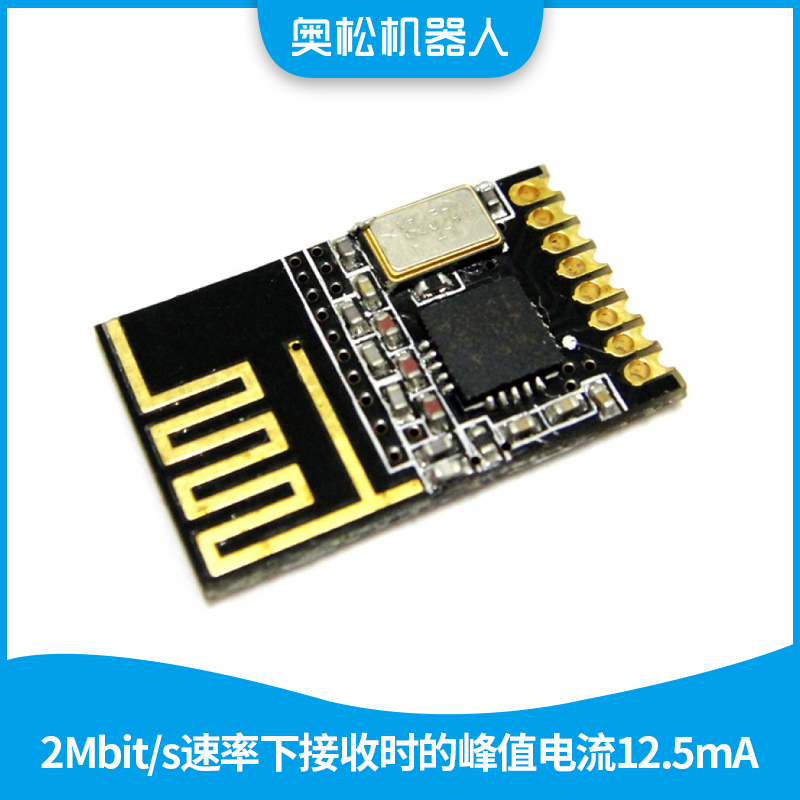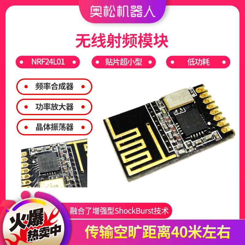 NRF24L01是一款新型单片射频收发器件,工作于2.4 GHz~2.5 GHz ISM频段。内置频率合成器、功率放大器、晶体振荡器、调制器等功能模块,并融合了增强型ShockBurst技术,其中输出功率和通信频道可通过程序进行配置,NRF24L01功耗低,在以-6 dBm的功率发射时,工作电流也只有9mA;接收时,工作电流只有12.3 mA,多种低功率工作模式(掉电模式和空闲模式)使节能设计更方便。2.4G工作频率,传输距离大约是空旷距离40米左右!