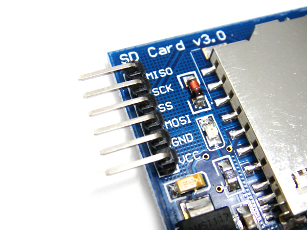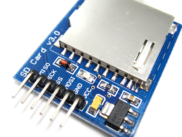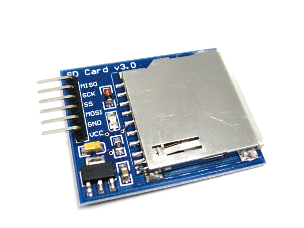 奥松机器人推出的Arduino SD Card v2.0(SD卡读写存储模块v2.0)是互动媒体设备常用存储模块,采用易插型SPI接口设计,PCB沉金工艺加工,模块板载电源指示灯,可实时观察电源供给情况,采用钽电解电容实现滤波退耦,所有的信号回路均用合适电阻进行阻抗匹配以及消振铃(寄生振荡)处理。本模块可通过6P杜邦线直插到Arduino Sensor Shield V5.0传感器扩展板或Arduino MEGA Sensor Shield V1.0传感器扩展板上,从而完成与Arduino Duemilanove 2009控制器、Arduino Mega1280控制器硬件上的连接,编写相应的Arduino程序可以实现各种传感器(如数字温度传感器、模拟温度传感器)数据记录、机器人动作存储指令读取等功能,通过读卡器将SD卡数据读出,便可轻松加以分析利用。 SD卡就是SecureDigitalCard—安全数码卡,由松下公司,东芝公司和美国SANDISK公司共同开发研制的,具有大容量、高性能、安全等多种特点的多功能存储卡。其是我们常用的存储卡,在数码相机、MP3播放器、阅读器、GPS导航仪等设备里都可以找到它。
