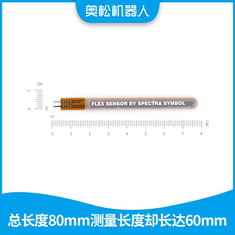您好,这款弯曲传感器测量长度长达60mm,总长度80mm的,如果您在使用过程中遇到任何问题可以在我们官网的技术论坛上发帖,会有专门的技术人员回复您的,论坛:www.makerspace.cn