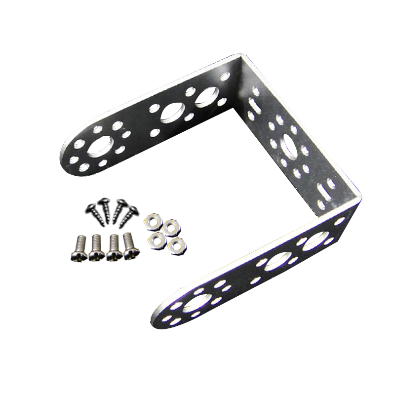 铝合金长U型舵机支架可以与铝合金舵机支架、杯士轴承、铝合金L型舵机支架组成机器人旋转关节,多自由度旋转云台、多自由度机械手臂、仿生机器人、双足竞步机器人、类人型机器人。零件表面特殊有色氧化工艺处理,边缘光滑不伤手,保证金属原色,美观耐用,防止长时间使用脱色。