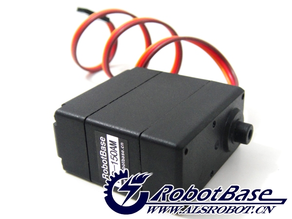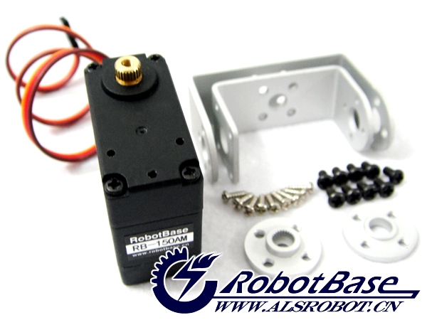 2014新推出的RB-150AM舵机是哈尔滨奥松机器人科技有限公司研发的一款金属齿大扭矩双输出轴机器人专用舵机。近年来中国机器人与航模市场的舵机一直被美国、日本、韩国的厂商控制,很多机器人爱好者与航模玩家认为国内厂商生产的舵机都要比国外的差,这是不正确的评价。一款舵机的评测要从多方面考量,消费者容易考量的是性价比,在我认为价格贵不一定好,只有在合适的领域应用,符合要求而且价格合理,那才是好的。