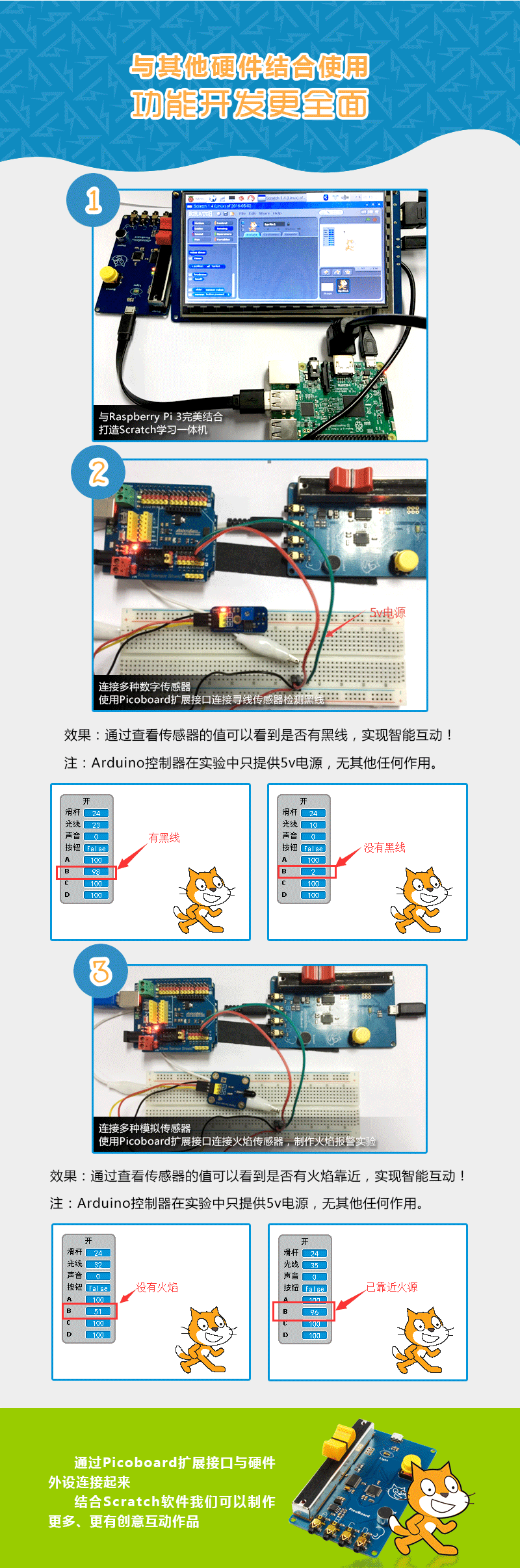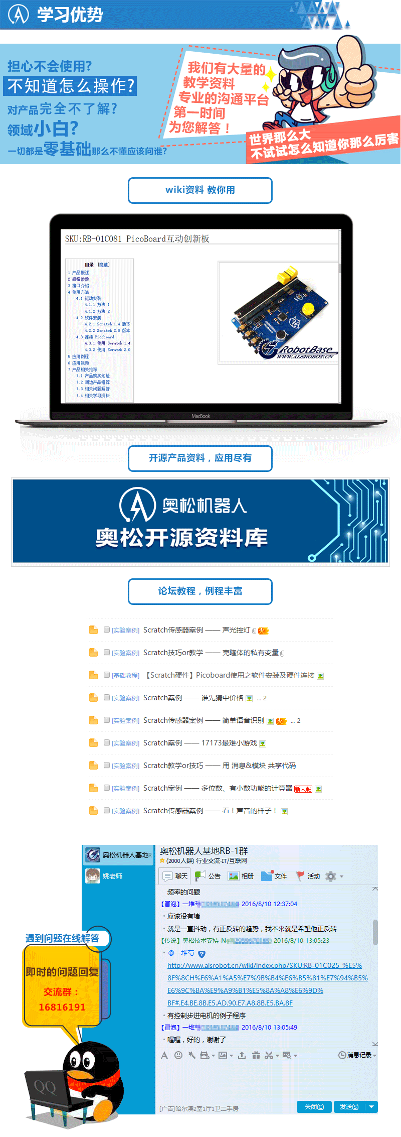 尊敬的顾客您好,这款picoboard传感器版,咱家有相关的资料讲解如何安装驱动和如何使用的,并且咱家的技术论坛上,有很多关于scratch的资料,您可以看看哦!