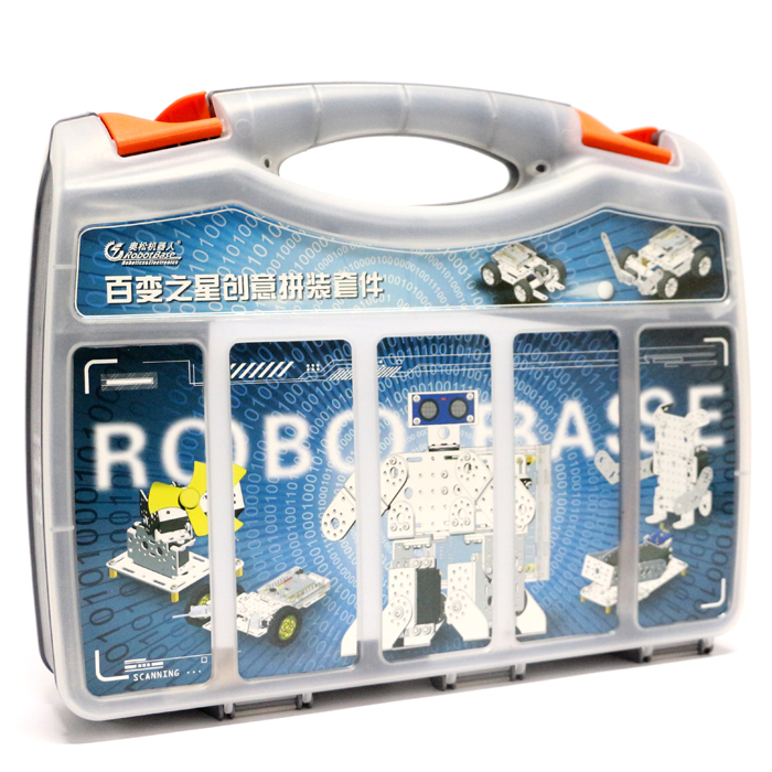 你想自己动手DIY制作智能的机械装置吗?你想拥有一款独一无二的机器人吗?你想让你的大脑更加具有创造力和想象力吗?你想让您的孩子在玩中学习到科学原理吗?只要你乐于创造,敢于体验新鲜事物,酷爱科学实验,那么这款百变之星创意拼装套件就是为你量身定制的最佳选择!想要享受创意拼装套件带给你的无穷乐趣吗? 百变之星创意拼装套件是一款机械、电子、软件相结合的科学实验DIY套件,它由控制器、传感器、机械零件相互作用,相互配合组成,通过随意拼装搭建可以塑造出不同形态事物,不仅能够锻炼青少年动手能力,还能够培养他们的想象力和创造力,团队合作拼装更能激发集体的协作配合能力。好动手喜欢DIY的小朋友可以在玩耍中学到电子学、生物学、物理原理、软件编程等科学知识,该套件打破青少年传统僵化教育,改变枯燥乏味的学习模式,以培养兴趣为导向,重点解决科技教具匮乏,实验缺少创新,硬件成本高等痛点,适合学生工程实践、毕业设计、机器人竞赛;老师通过它可以实现创新教学;创客使用它可以实现新产品原型设计验证等,同时满足金属控,机器人控、DIY控的一切需求,让你一动手就爱上他!