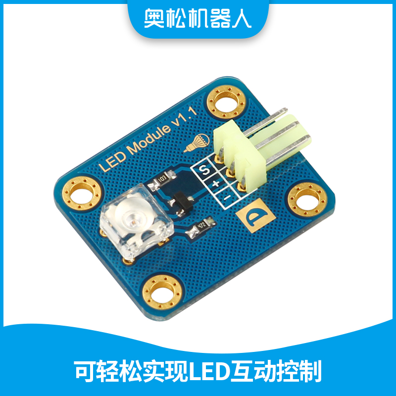 随着近年来LED原材料市场的迅猛发展,各种各样的LED走进我们的生活,尤其彩色LED显示屏的飞速发展,让LED应用市场进入新世纪,LED控制系统的 市场也变的更加广阔。为了让电子爱好者与时俱进,新推出的 LED发光模块是 你学习控制LED的入门必备用品,模块采用市面新环保型食人鱼LED,与传统LED相比,不仅体积小、功耗低(3.3V时,电流20mA)、使用寿命 长、而且亮度高、发光角度大。正是优于这些众多优点,使其刚刚诞生后立刻引起大家关注、其发展趋势像食人鱼一样凶猛故得此名。模块通过3P传感器连接线与 传感器扩展板相连,方便快捷,经过控制器编程后,即可轻松实现LED互动控制。