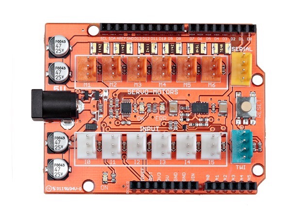 - 5.M1~M6连接器与Arduino板上具有PWM功能的输出相连。I0~I5连接器为模拟输入。