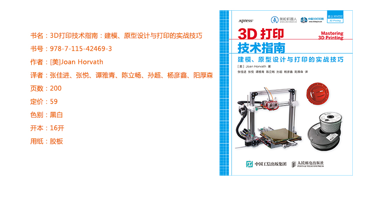 当前位置: 首页 > 教学课程/图书 > 机器人系列图书 > 3D打印技术指南 建模 原型设计与打印的实战技巧 3D打印技术 指导教材