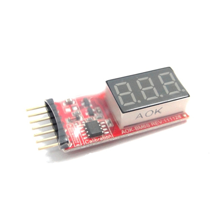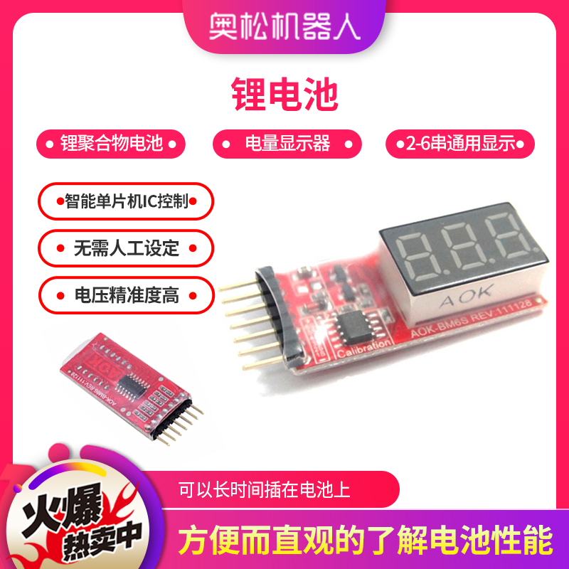 锂电池组每个电芯电压、总电压实时显示! 防止锂电池组过放,保护投资! 昂贵的锂离子、锂聚合物电池组,放电倍率高,无记忆效应,性能优异,已经成为航模动力电池的大趋势,但锂电池组的致命缺陷是对过放电极其敏感,只要有一次过放电,导致组内某个电芯电压掉到接近0v,往往即导致整组电池报废!可惜的是,目前锂电池组的使用设备本身带防止过放功能的很少,主要集中于一些采用了好的电调的模型上,而一般模型设备和普通的用电设备,根本没有防止过放电的装置,这导致了人们在使用锂电池组时往往提心吊胆,经常在使用一小段时间后就开始充电,影响了锂电池性能的充分发挥;而稍有不慎导致某个电芯过放电,即带来不可挽回的后果!本显示器采用智能单片机IC控制,自动对不同容量的锂电池电压显示,无需人工设定。功能:在使用锂电池组时,可以直接插在锂电池组的平衡头上,实时显示组内各个电芯的电压、电池组的总电压,当玩家直观看到某个电芯接近3.0v(锂电芯放电的安全临界点)时,即停止使用,防止了锂电池的过放电可能,保护了昂贵的锂电池不受伤害!