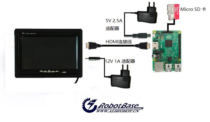 - 使用5V 2A适配器给树莓派控制器进行供电