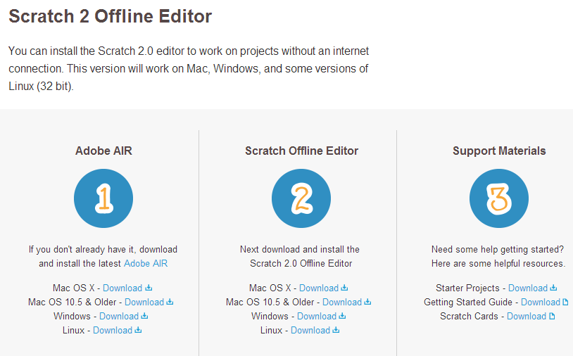 - 根据电脑操作系统,下载 Scratch2.0 软件及 AdobeAIRInstaller 软件