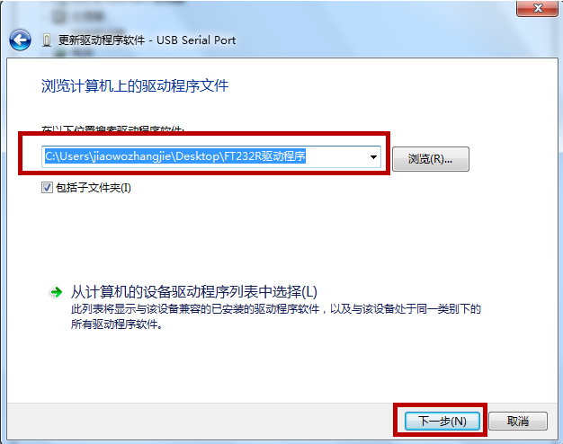 - 弹出以下对话框,点击浏览,找到刚才下载文件解压的位置