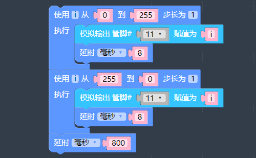 for (int a=0; a<=255;a++) //循环语句,控制PWM亮度的增加