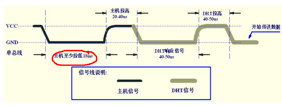 digitalWrite(dht11,LOW);//拉低总线,发开始信号