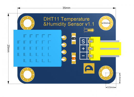 此款新推出的DHT11温湿度传感器数据接口采用防插反插头,接口两侧分别有字母“D”代表信号类型为数字信号,和 “温度”标识代表传感器类型,传感器特设4颗M3固定安装孔,调节方向与固定方便易用,美观大方。此款传感器是一款含有已校准数字信号输出的温湿度复合传感器。它应用专用的数字模块采集技术和温湿度传感技术,确保产品具有极高的可靠性与卓越的长期稳定性。传感器包括一个电阻式感湿元件和一个NTC测温元件,并与一个高性能8位单片机相连接。因此该产品具有品质卓越、超快响应、抗干扰能力强、性价比极高等优点。每个DHT11传感器都在极为精确的湿度校验室中进行校准。校准系数以程序的形式储存在OTP内存中,传感器内部在检测信号的处理过程中要调用这些校准系数。单线制串行接口,使系统集成变得简易快捷。超小的体积、极低的功耗,信号传输距离可达20米以上,使其成为各类应用甚至最为苛刻的应用场合的最佳选则。DHT11数字温湿度传感器模块为3针PH2.0封装,连接方便。