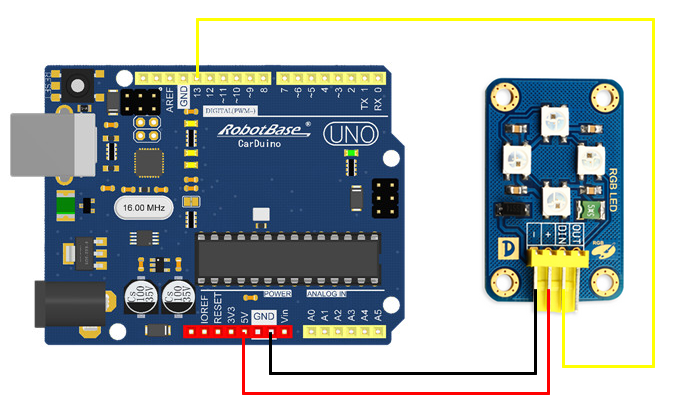 led.setColorAt(3, 200, 10, 10); // 设置第 3 个LED的 RGB 值