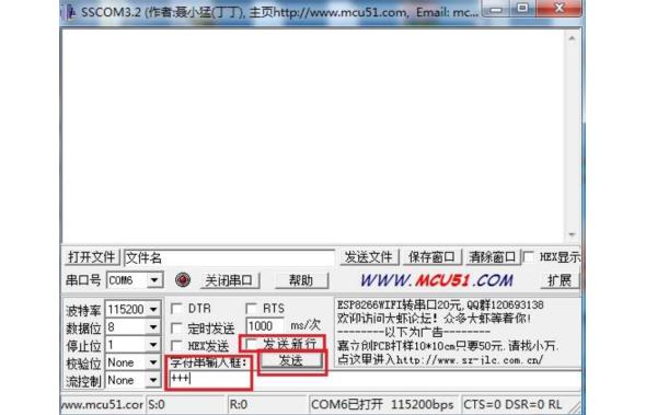 在透传模式中,若识别到单独的一包“+++”,则退出透传模式。如果直接用键盘打字输入+++,可能时间太慢,不容易被认为是连续的三个+,建议如下操作: