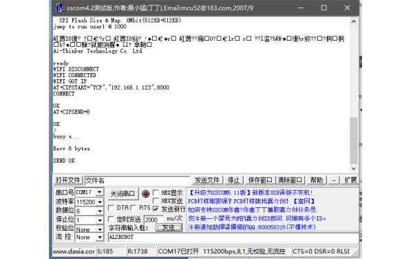 注意:若发送的字节数目超过了指令设定的长度n,则会响应busy,并发送数据的前n个字节,完成后响应SEND OK.