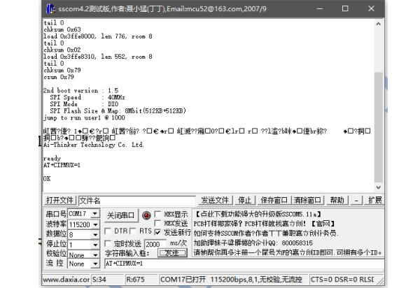 响应:> //从此开始,串口输入的字符会透传到服务器端