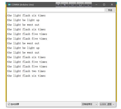case 'A': LED_flash(4);Serial.println("the light flash four times");break; //闪烁4次