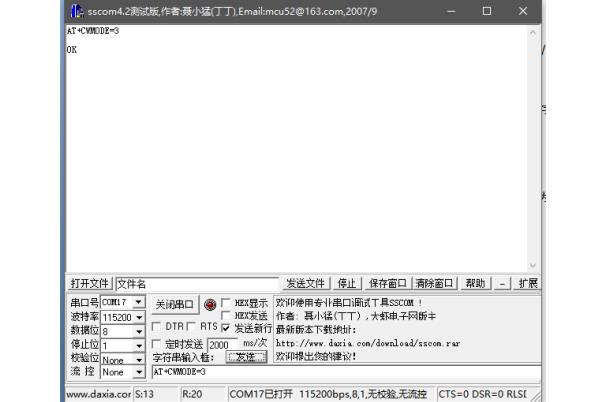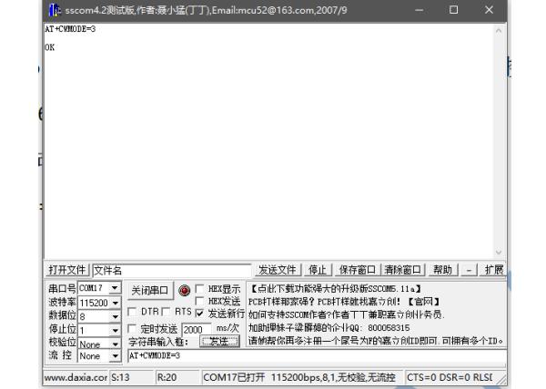 AT+CWMODE=3 //设置为 softAP+station