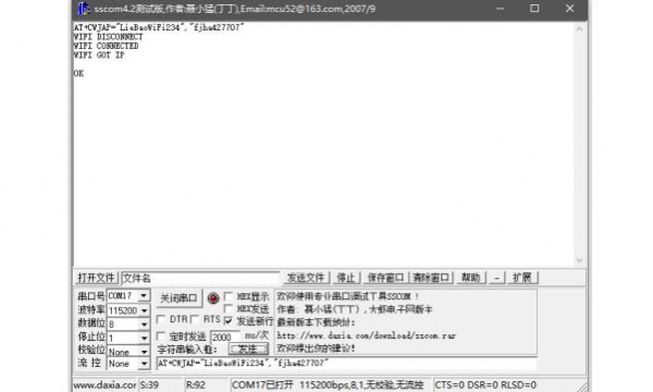 AT+CWJAP=”ssid”,”password” //传入路由器的ssid 和 password