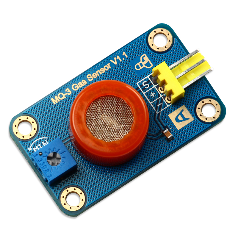 此款酒精传感器采用MQ-3型气敏元件,其对酒精的灵敏度高,可以抵抗汽油、烟雾、水蒸气的干扰,很灵敏的检测到空气中的乙醇气体。MQ-3型气敏元件所采用的材料是在清洁空气中电导率较低的二氧化锡(SnO2)。当传感器所处环境中存在酒精蒸发气体时,传感器的电导率随空气中酒精气体浓度的增加而增大。因此可通过3P传感器连接线直接插接到Arduino传感器扩展板上,通过Arduino控制器编程方便使用,结合蜂鸣器模块与继电器模块,可以制作酒精报警器、酒精浓度测试仪等产品。用途:用于机动车驾驶人员是否酗酒及其它严禁酒后作业人员的现场检测;也用于其它场所乙醇蒸气的检测。