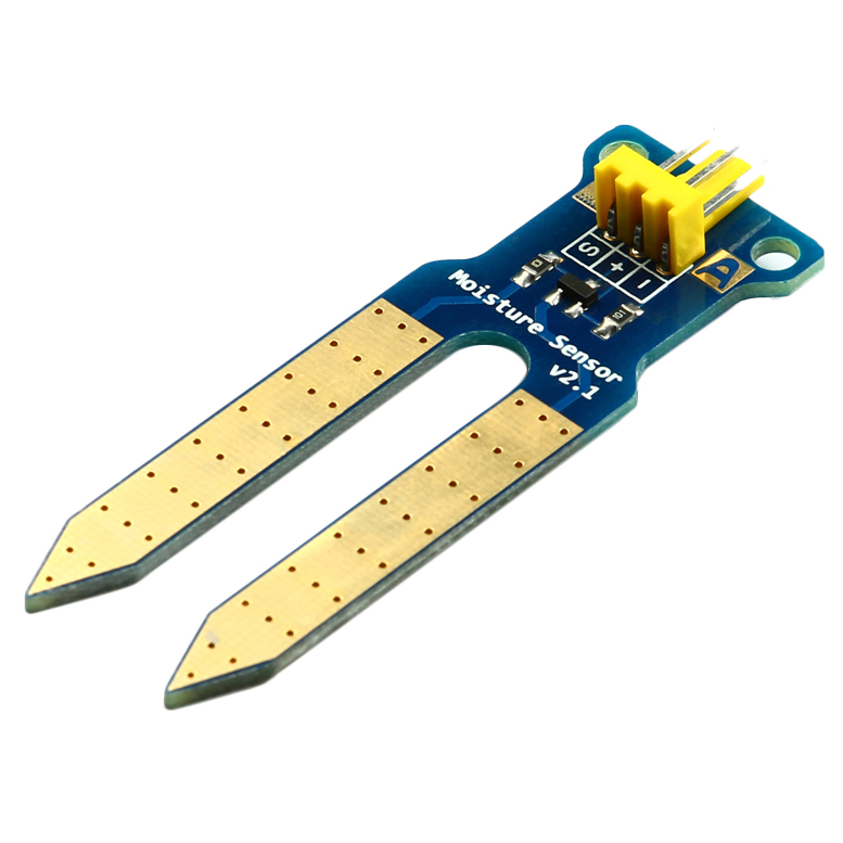 这是一个简易的水分传感器可用于检测土壤的水分,当土壤缺水时,传感器输出值将减小,反之将增大。使用这个传感器制作一款自动浇花装置,当您长时间不在家或过了浇水的时间,它可以感测到您的植物是否已经渴了。防止植物枯萎了才知道是缺水造成的。