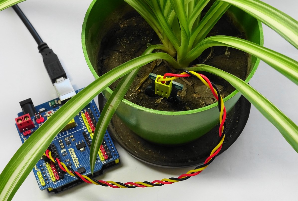 对于家里有养花草的人来说,一旦到外地出差或者出门远游,他们会纠结一个问题:家里的植物交给谁来打理呢?外出期间没有人浇水,它们很有可能会枯死。如果真的找不到别人来帮忙的话,我们可以利用Arduino控制器和土壤湿度传感器等器件,来做一个简易自动浇花系统。