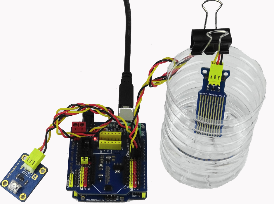 此传感器是一款简单易用、小巧轻便、性价比较高的水位/水滴识别检测传感器,其是通过具有一系列的暴露的平行导线线迹测量其水滴/水量大小从而判断水位。水位传感器轻松完成水量到模拟信号的转换,输出的模拟值可以直接被程序中函数所应用,达到水位报警的功效,低功耗,灵敏度高是其一大特点。配合Arduino 控制器可直接插接到传感器扩展板上进行实际应用,效果更加明显。